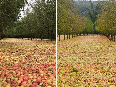 إياد – هكذا تساقطت الثمار عندما ضرب إيرلندا إعصار “أوفيليا” قبل شهرين. الإعصار ضرب بستان كامل من أشجار التفاح بالقرب من مدينة تيبيراري الإيرلندية حتى تحولت الأرض إلى ما يشبه سجادة تفاح!
